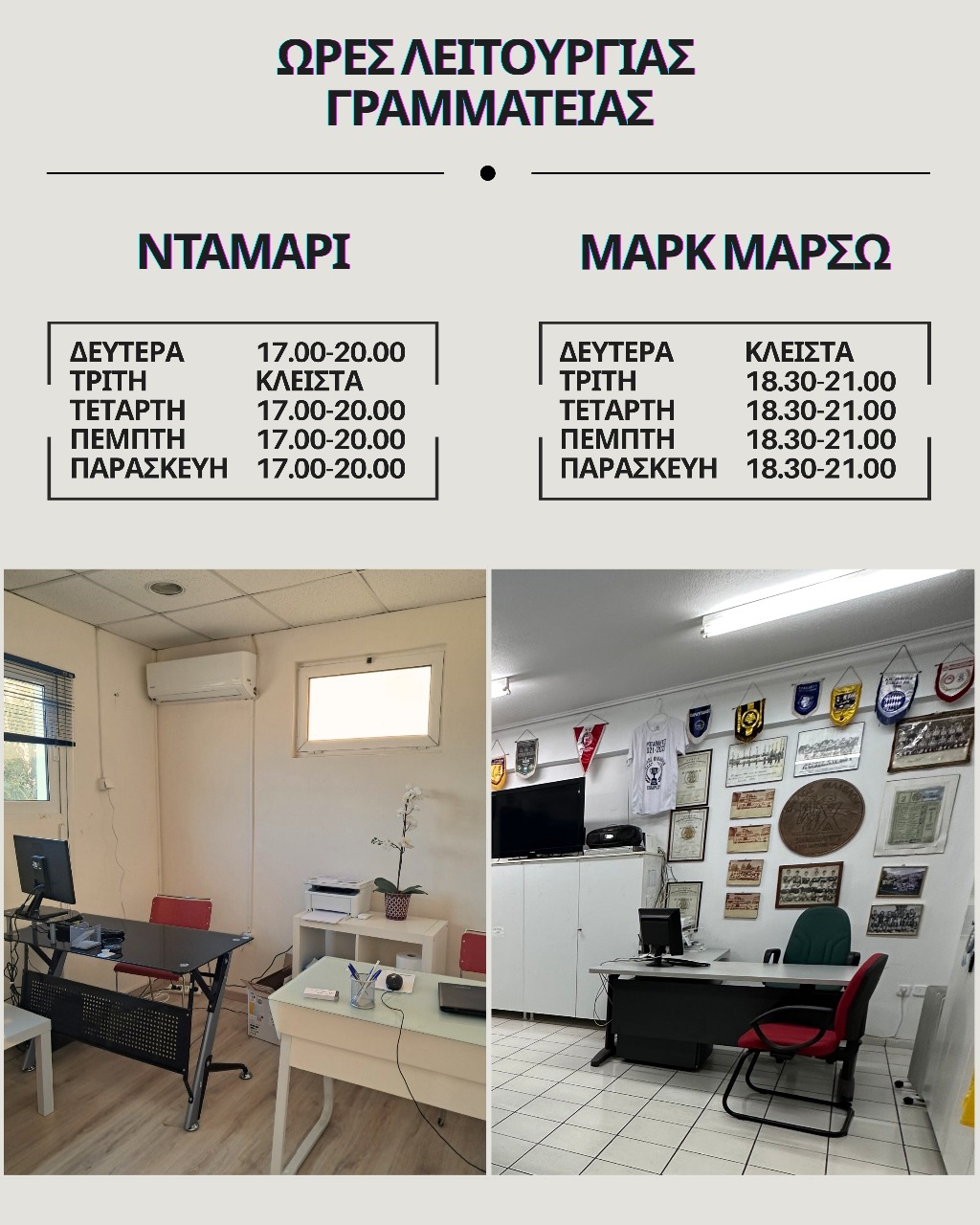 Από αύριο, η Ακαδημία Ποδοσφαίρου Χολαργού λειτουργεί πλέον με δύο γραφεία γραμματείας για την καλύτερη εξυπηρέτησή σας!